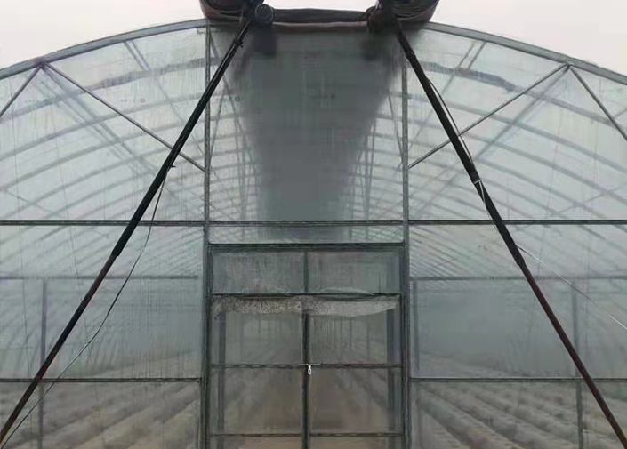 在夏季,由于進(jìn)入溫室的太陽輻射熱負(fù)荷太高,溫室雖然經(jīng)過通風(fēng),但溫室內(nèi)的高溫、低濕環(huán)境對(duì)植物的生長(zhǎng)還是不利的。當(dāng)使用外遮陽系統(tǒng)時(shí),由于阻隔了部分太陽輻射進(jìn)入溫室,在具有良好通風(fēng)的溫室中可將室內(nèi)溫度控制到只比室外氣溫高1度的水平。托、壓幕線采用高強(qiáng)度黑色uv聚酯線,遮陽網(wǎng)采用外遮陽幕布,遮陽率85%,保質(zhì)期5年,壽命10年。整個(gè)系統(tǒng)限位準(zhǔn)確,運(yùn)行平穩(wěn)可靠,操作安全。