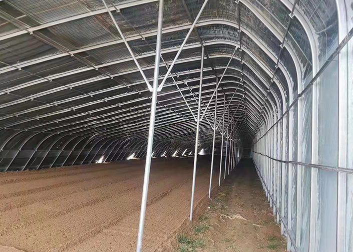 2、溫室骨架為輕型鋼結(jié)構(gòu),骨架結(jié)構(gòu)采用國產(chǎn)熱鍍鋅鋼材制成。